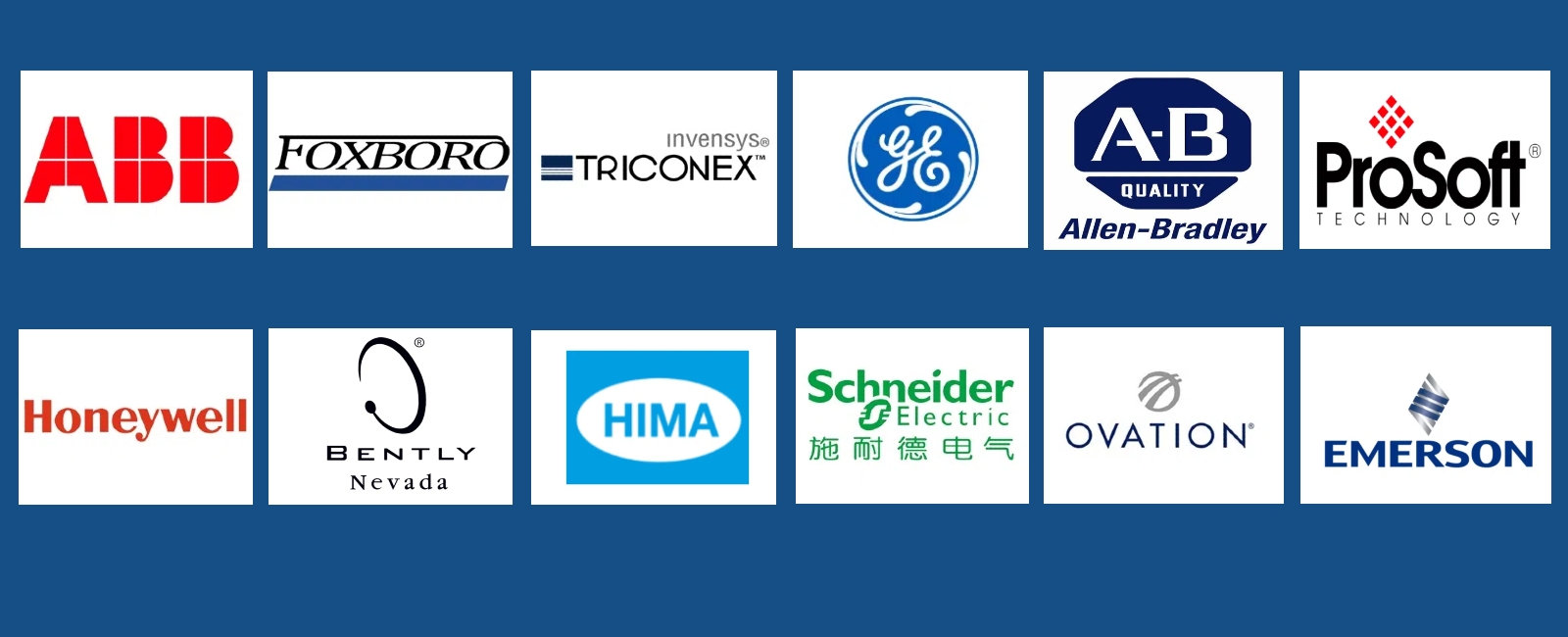 例如:ABB、AB、GE、BENTLY、FOXBORO、TRICONEX、SCHNEIDER、HIMA...等各大歐美品牌。我司能直接從境外進貨、能夠提供不同國別、廠商的設備以及備件、解決您多處尋找的麻煩或對產品質量問題的擔心等、在價上我們有很大的優勢。